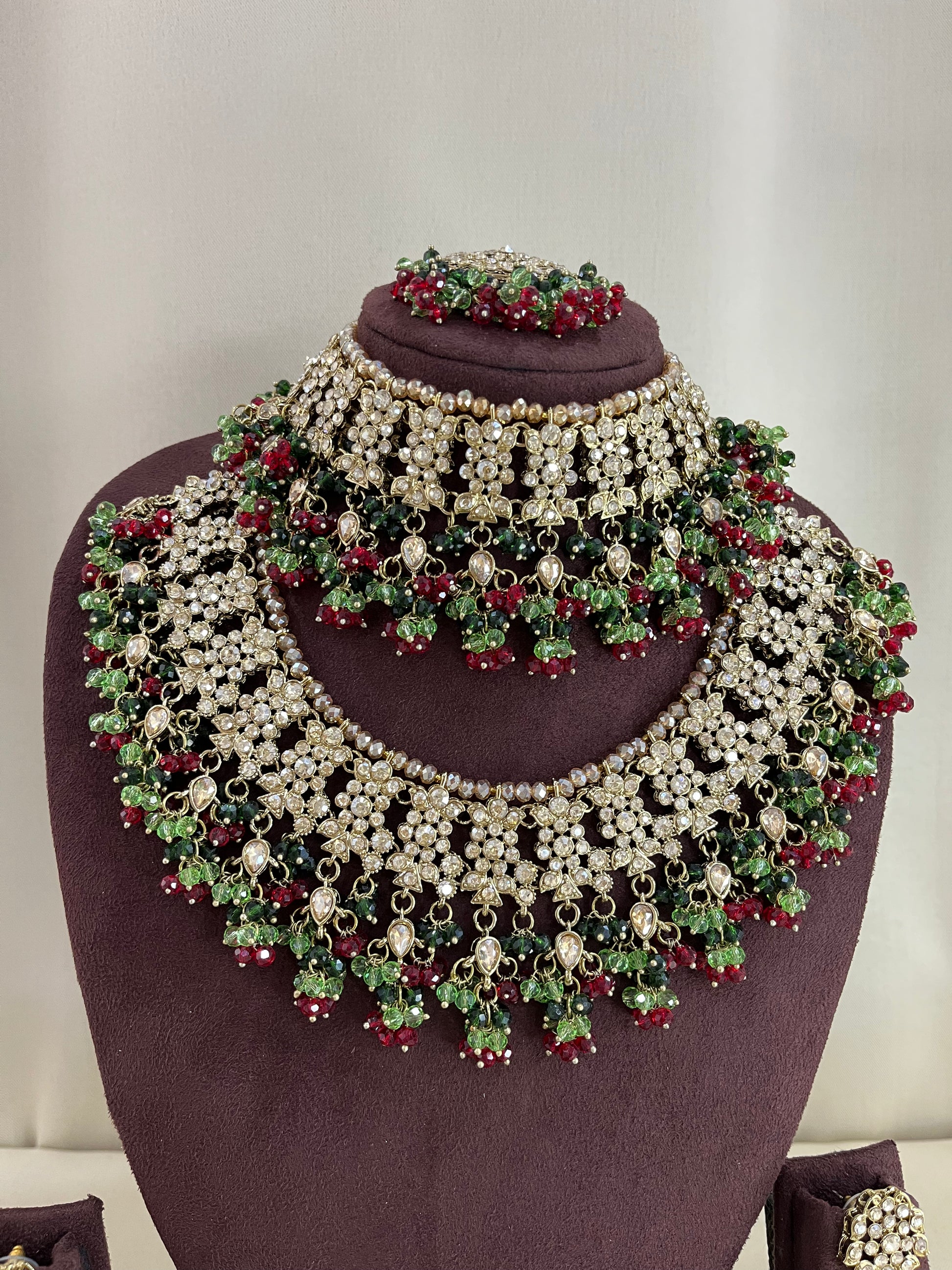 American Diamond Pakistani Bridal Combo Set - Mehendi
