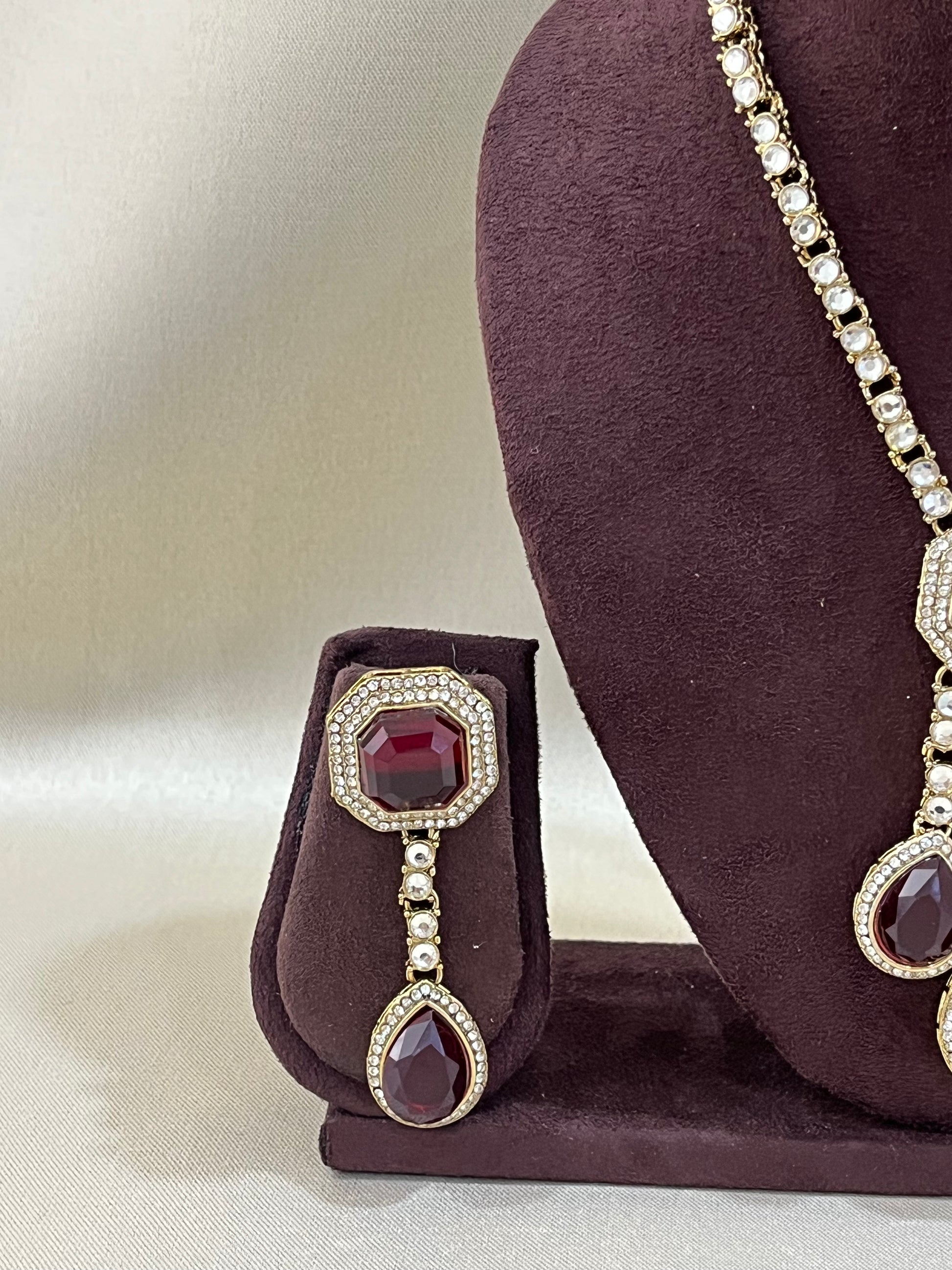 Delicate Kundan Necklace Set - Ruby Red