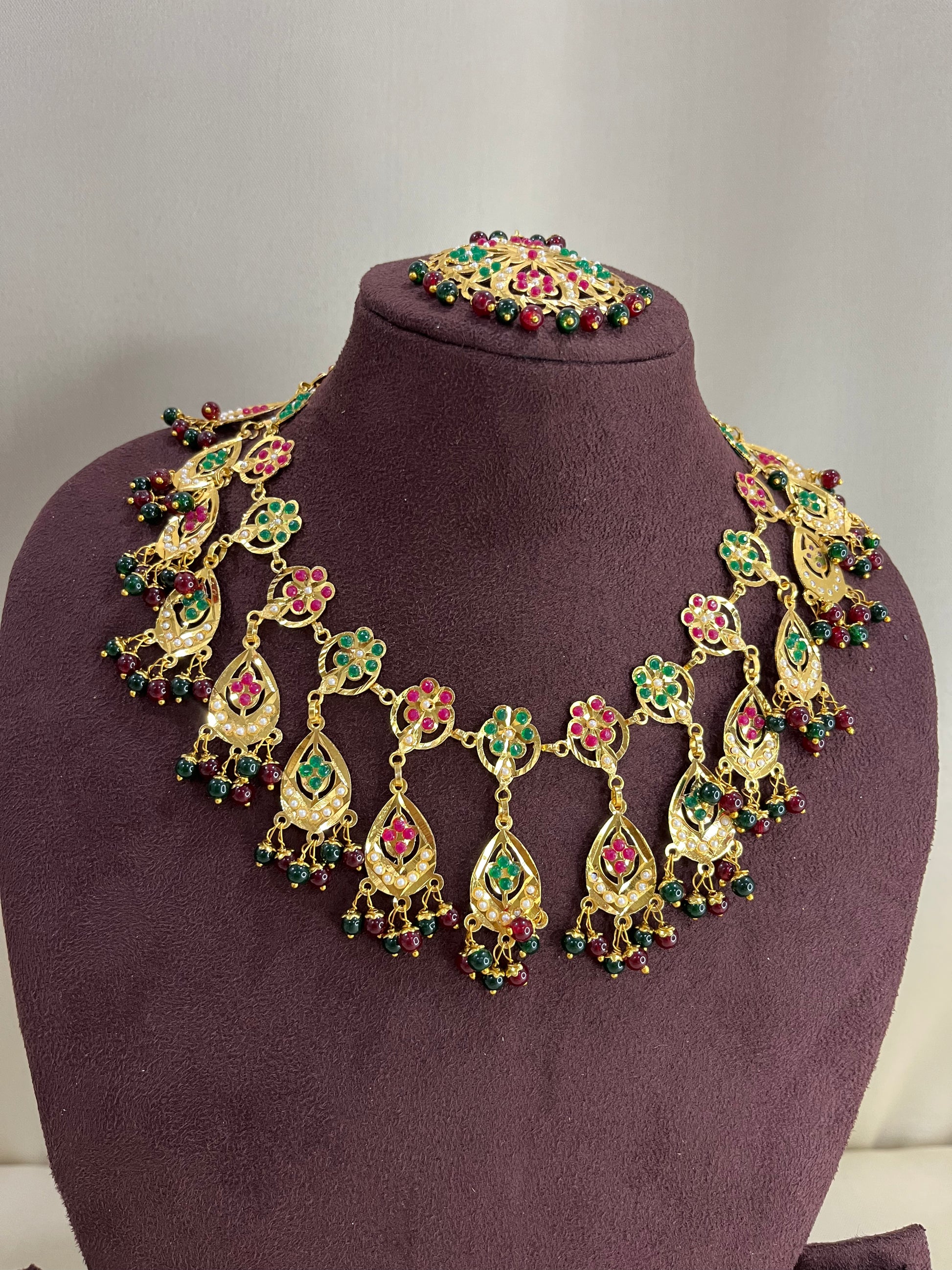 Heritage South Indian Light Weight Necklace Set - Mehendi