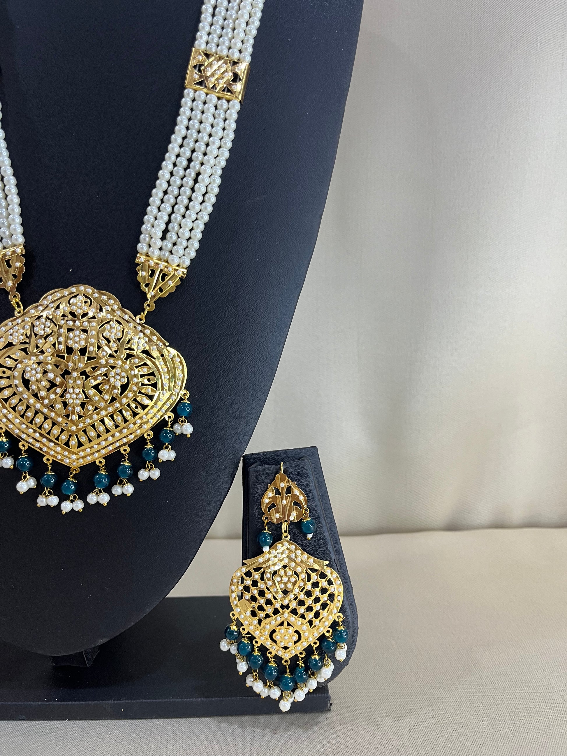 Jadau Kundan Bridal Combo Necklace Set - Pearl Turquise