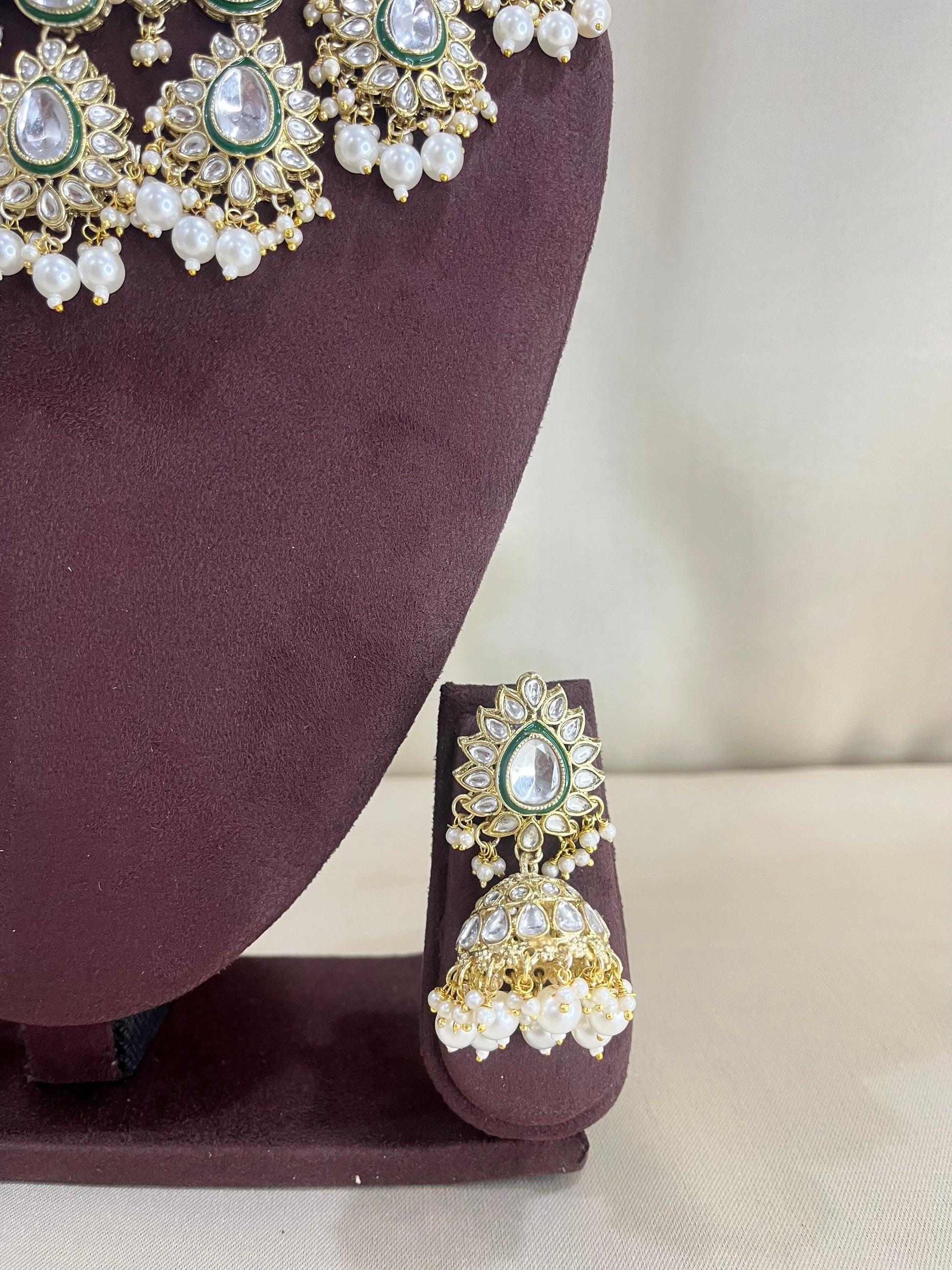 Kundan Polki Necklace Set - Pearl White
