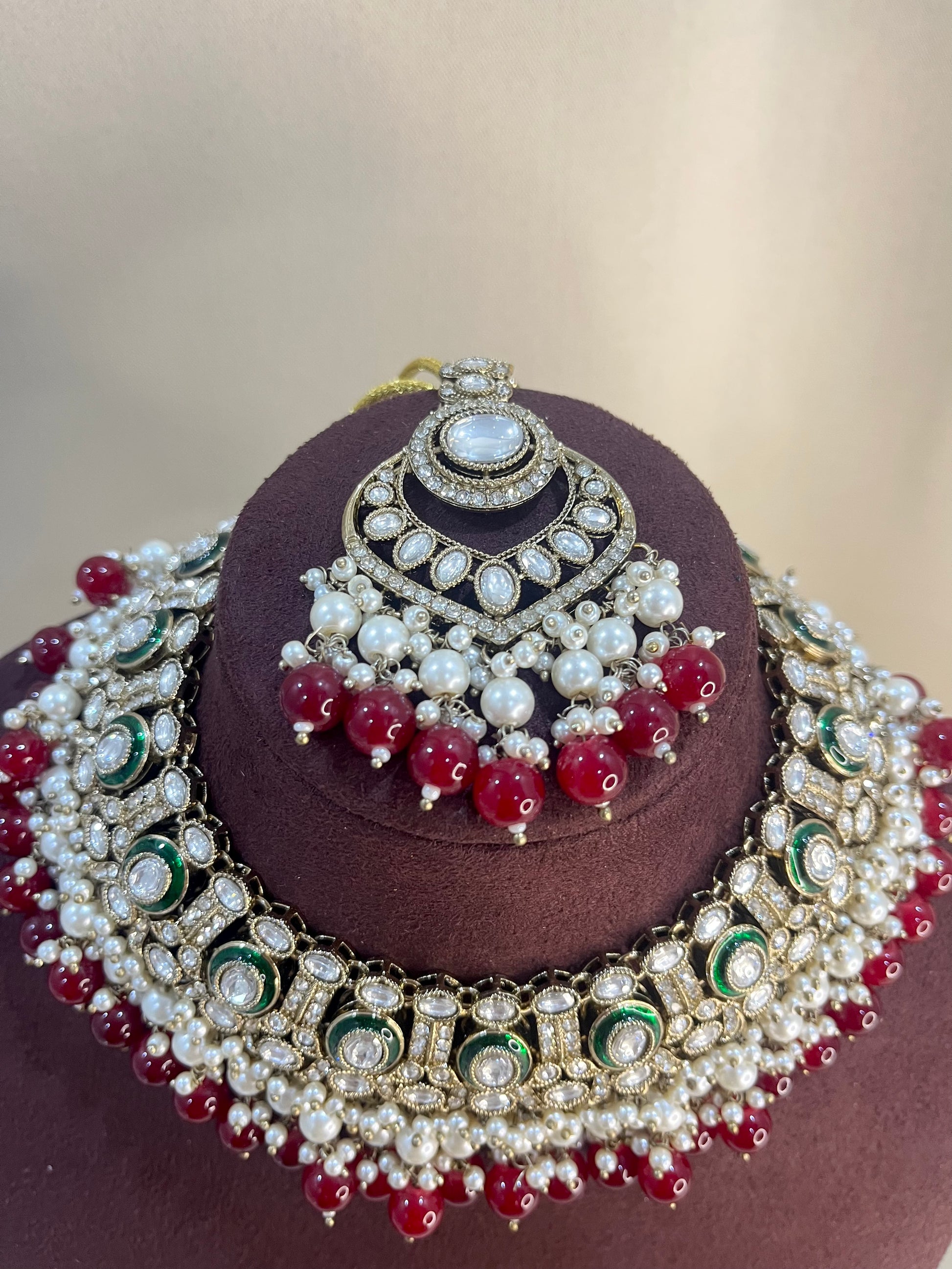 Moissanite Kundan Full Necklace Set - Ruby