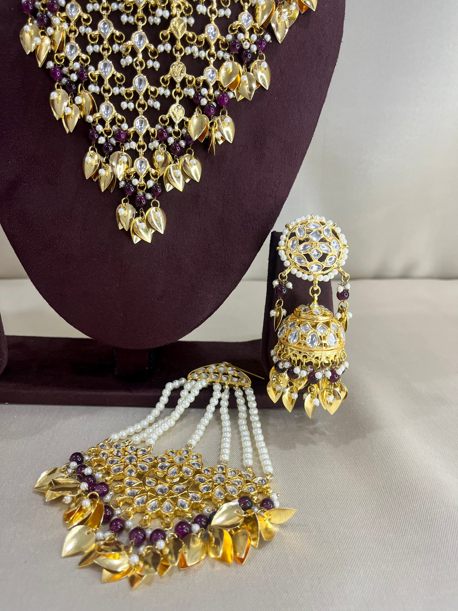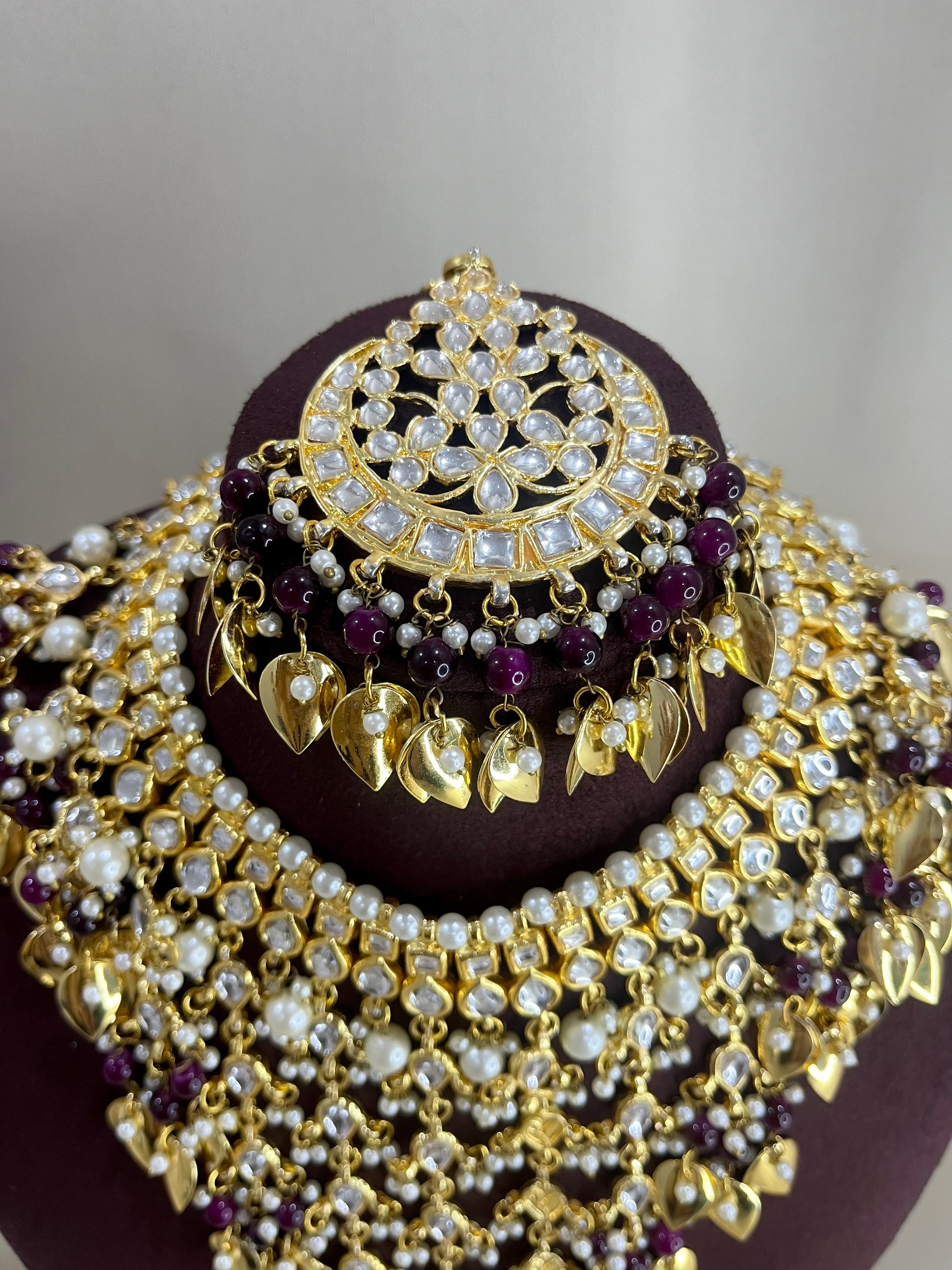 Moissanite Polki Semi Bridal Necklace Set - Magenta Pink