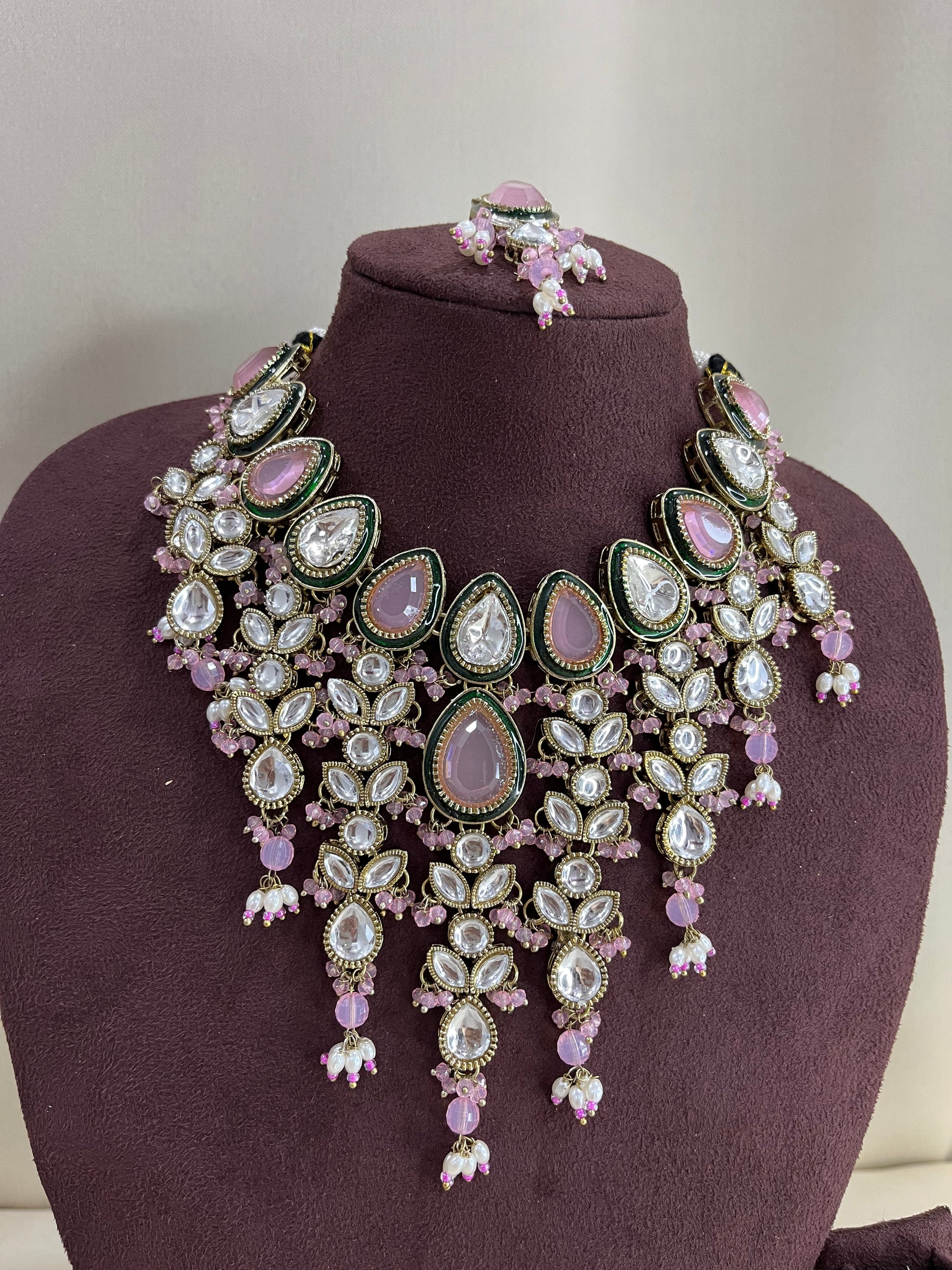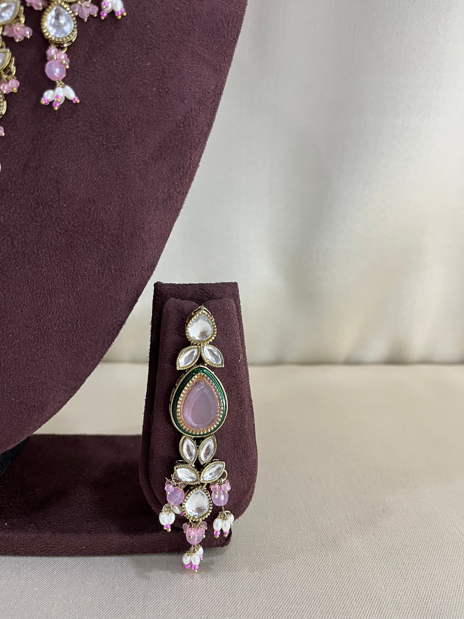 Paachi Kundan Necklace Set With Tika - Pink Kundan
