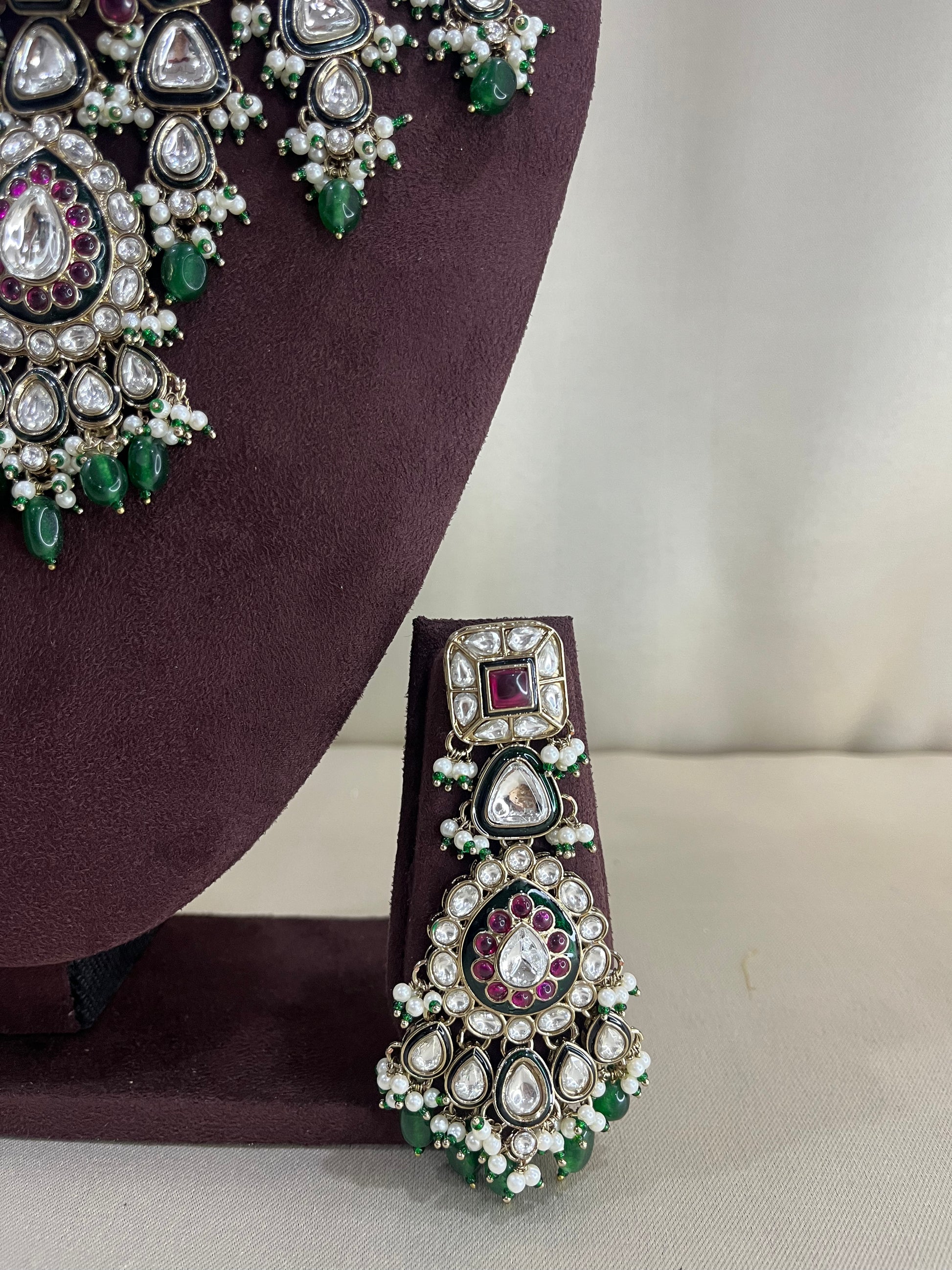 Paachi Kundan Semi Bridal Necklace Set - Emerald & Ruby