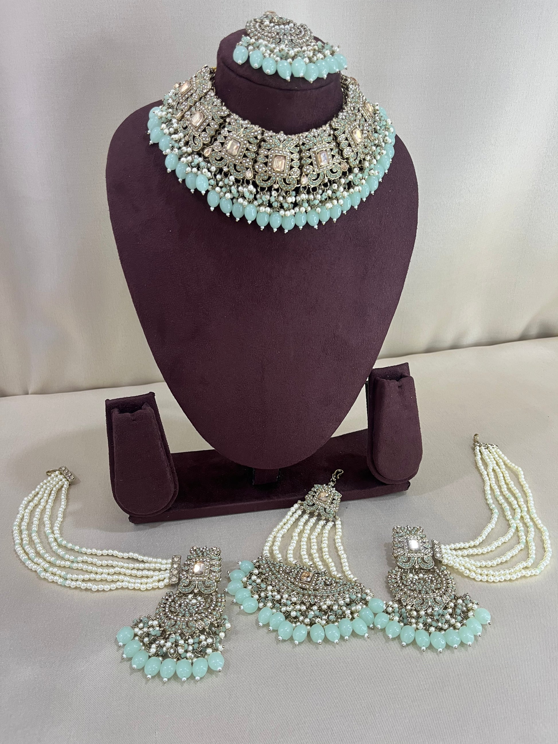 Polki Kundan Pakistani Necklace Set - Mint