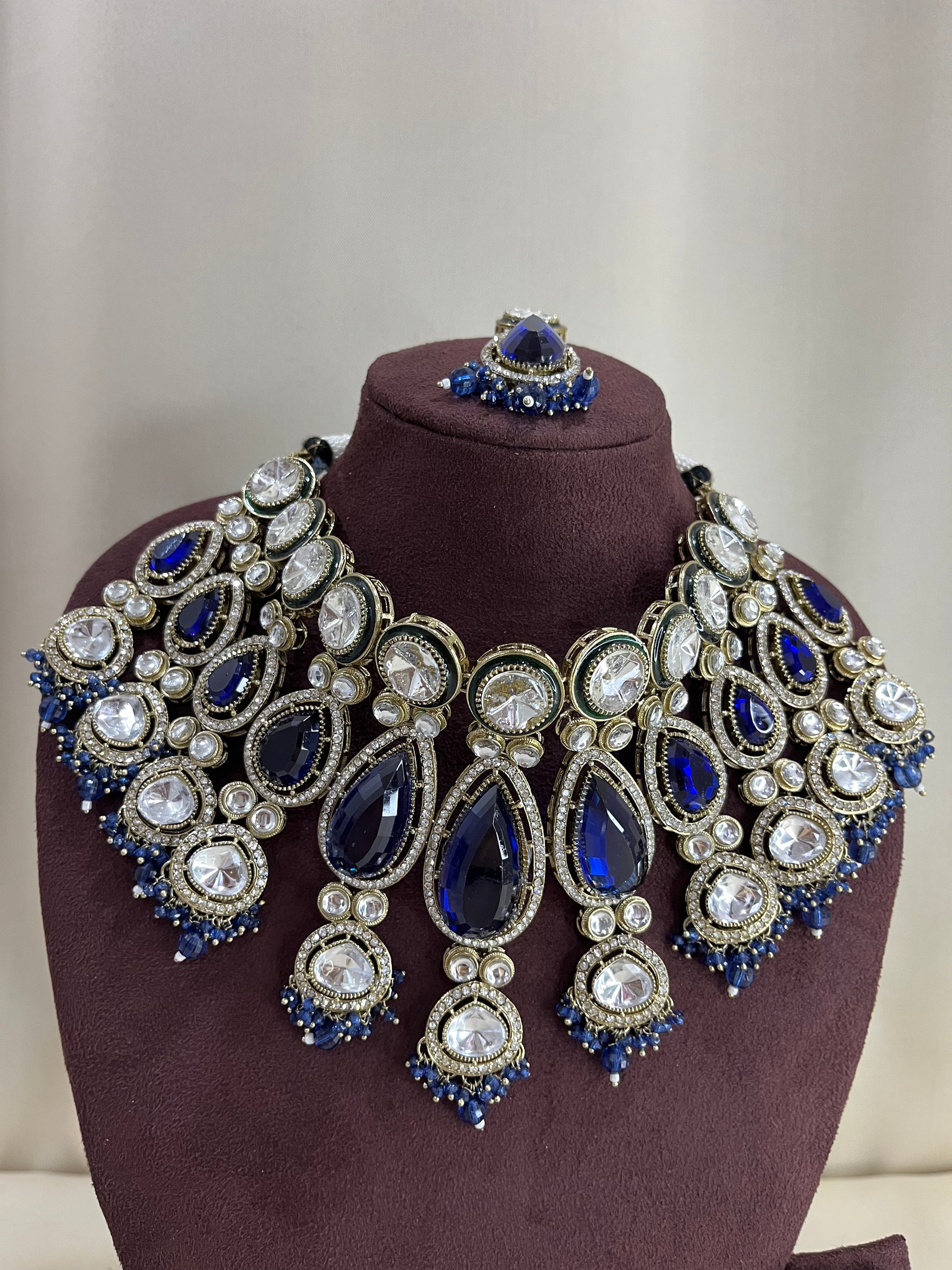 Royal Blue Semi Bridal Necklace Set - Royal Blue